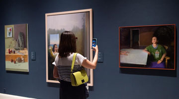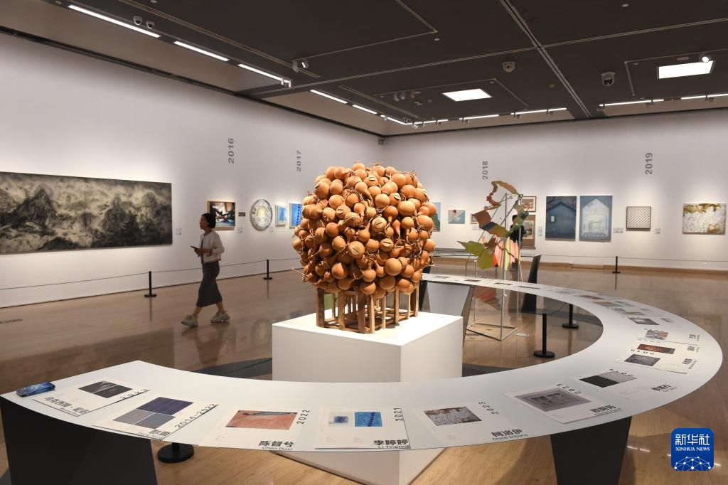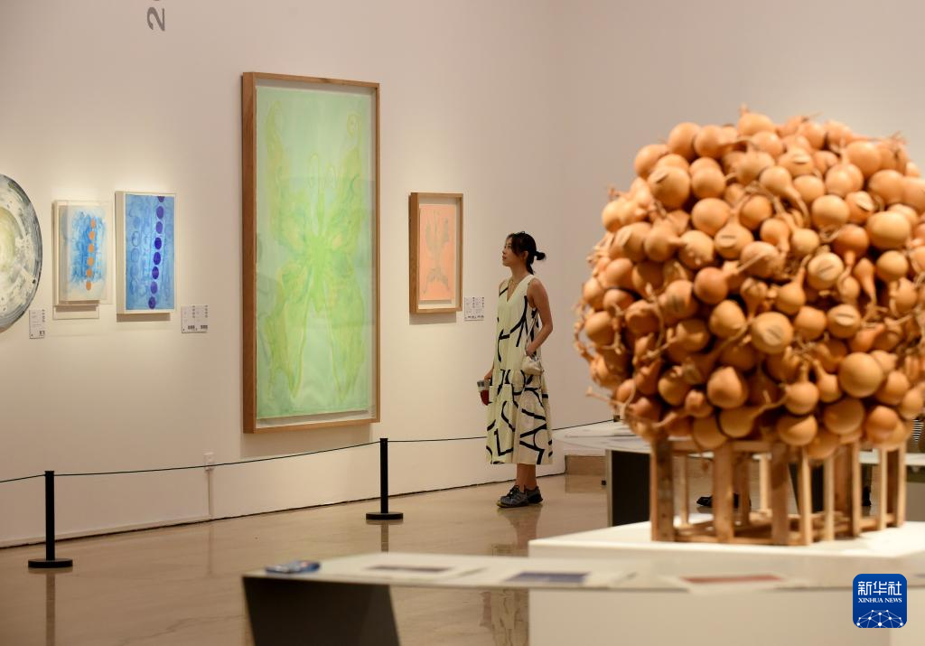 4月20日,觀眾在中國美術館觀看“藝術8——青年藝術家聯展”。