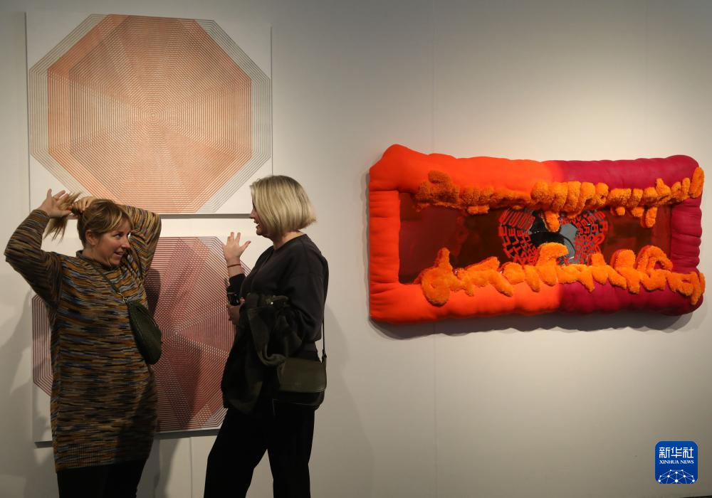 4月25日,在美國舊金山梅森堡中心舉行的舊金山藝術博覽會上,人們觀看藝術作品。