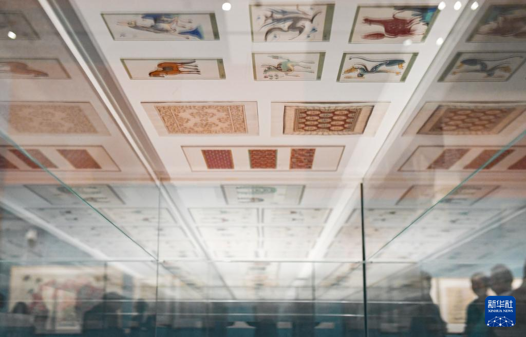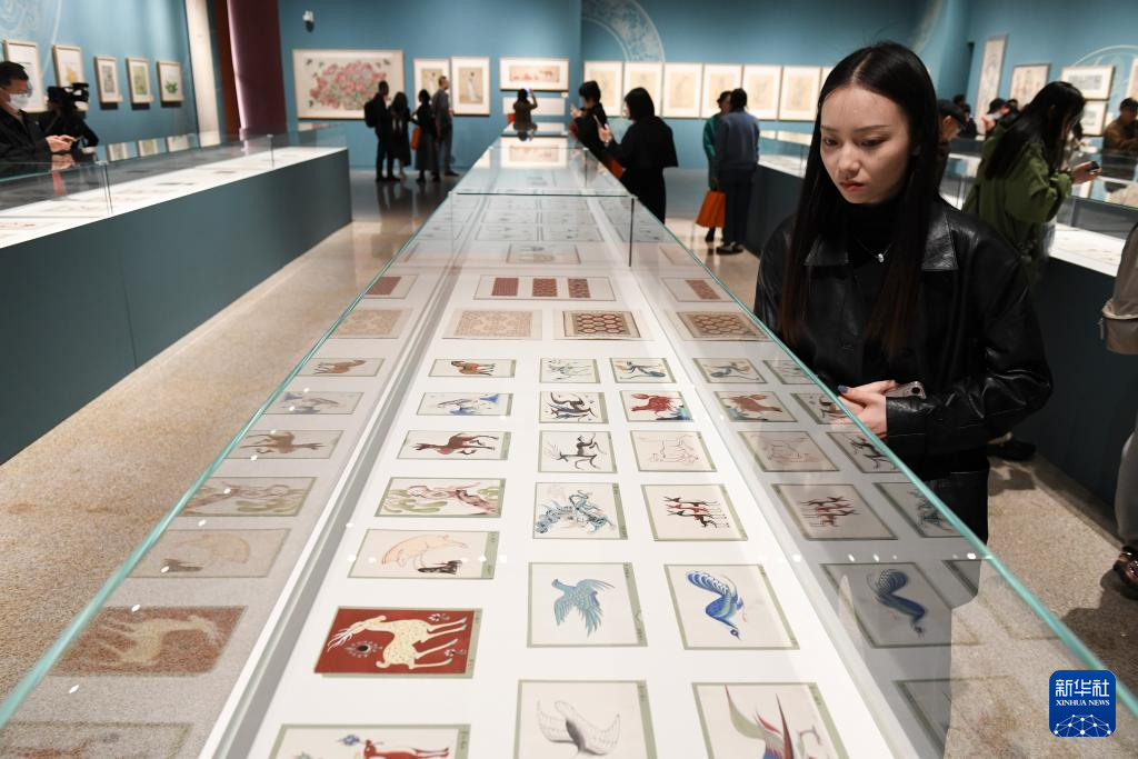 4月29日拍攝的在中國工藝美術館展出的常沙娜敦煌圖案設計品。
