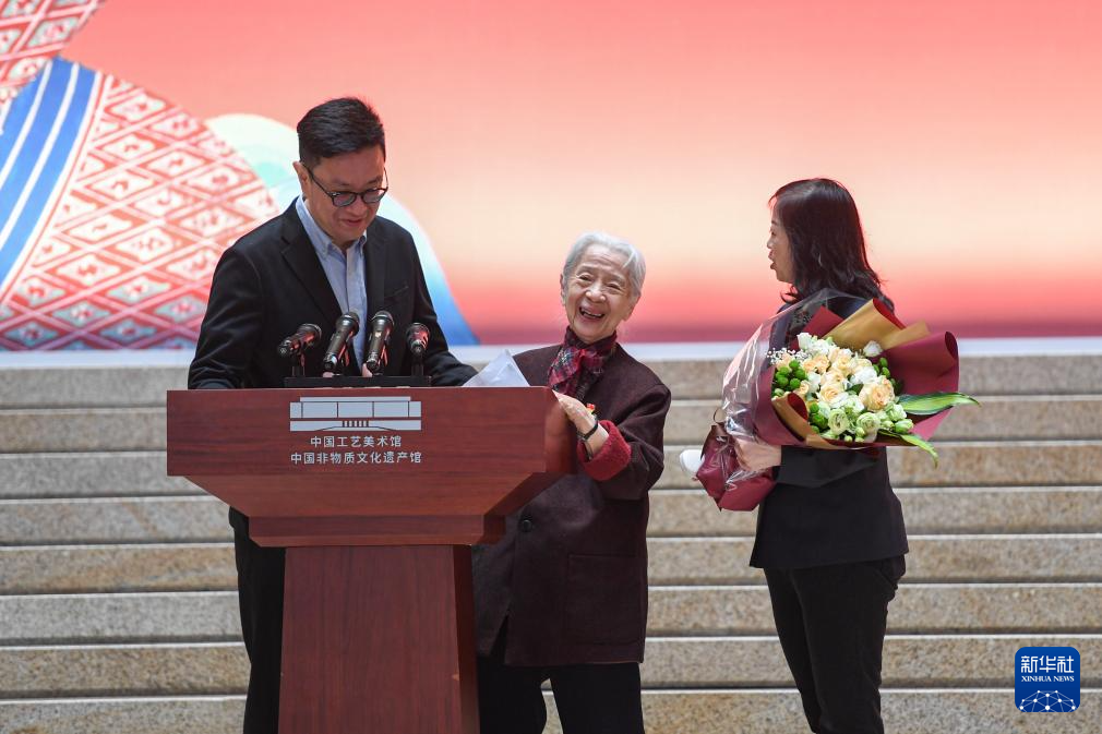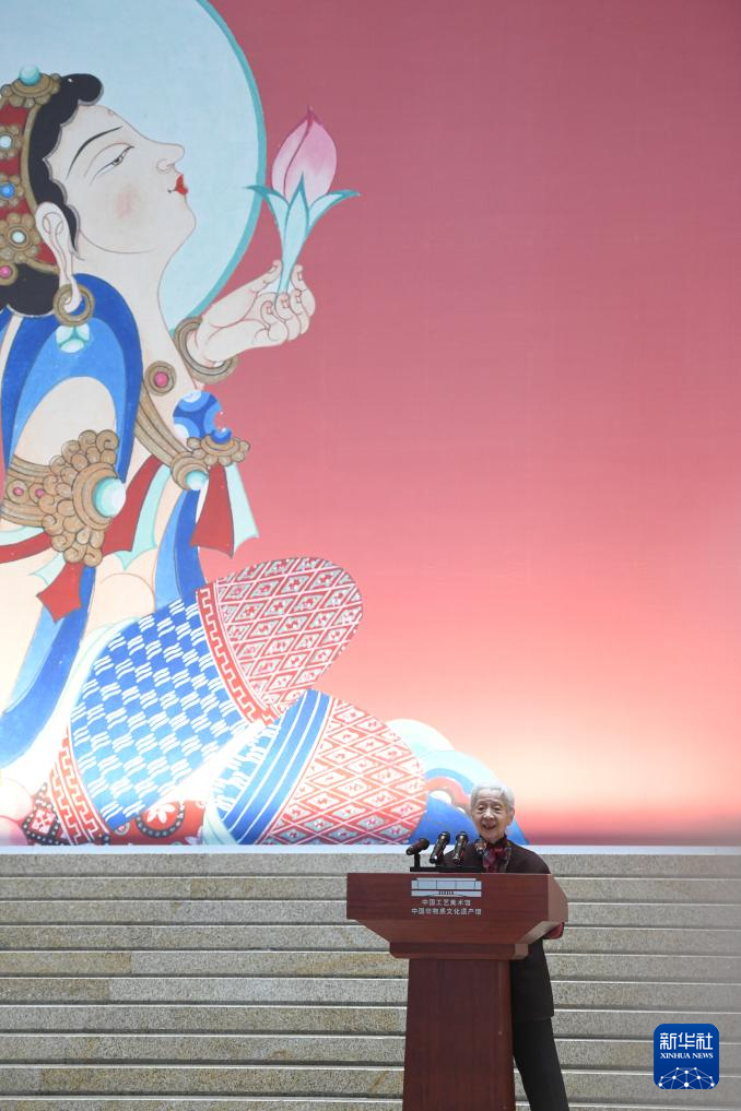 當日,中國工藝美術館(中國非物質文化遺產館)舉辦“花開敦煌——常沙娜從藝八十年藝術與設計展”開幕活動。該展覽將持續至2024年10月27日,共展出近400件展品,通過展示常沙娜的敦煌臨摹、花卉寫生、建筑裝飾等作品,講述她將敦煌文化應用于國家形象塑造、傳統文化傳承的八十載從藝人生。
