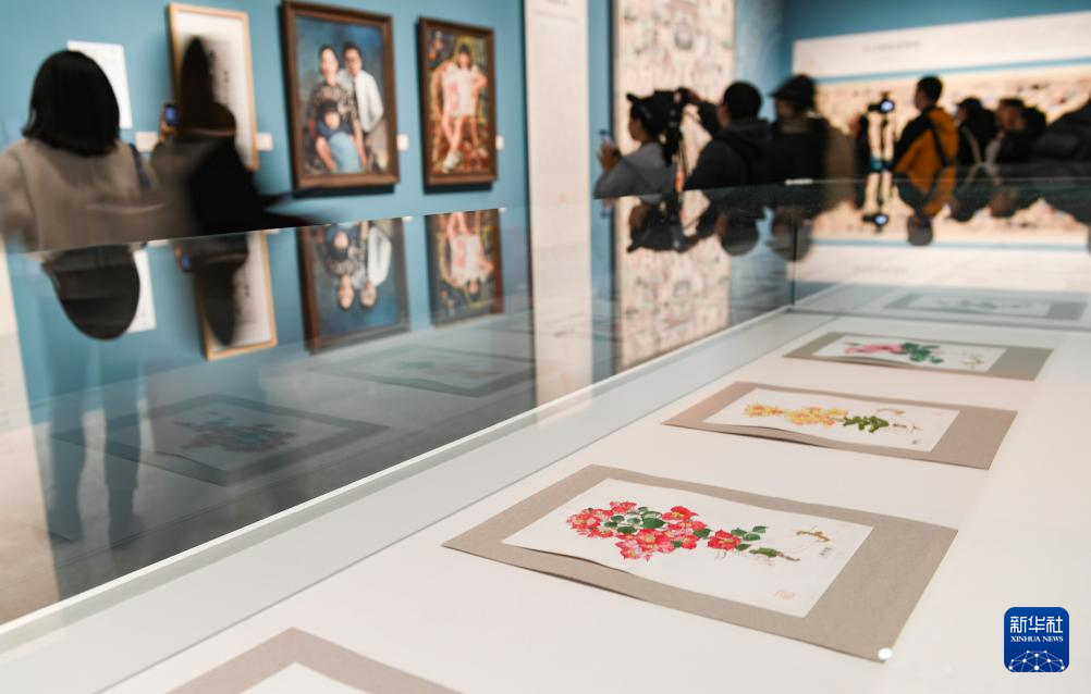 在中國工藝美術館展出的常沙娜花卉寫生作品(4月29日攝)。