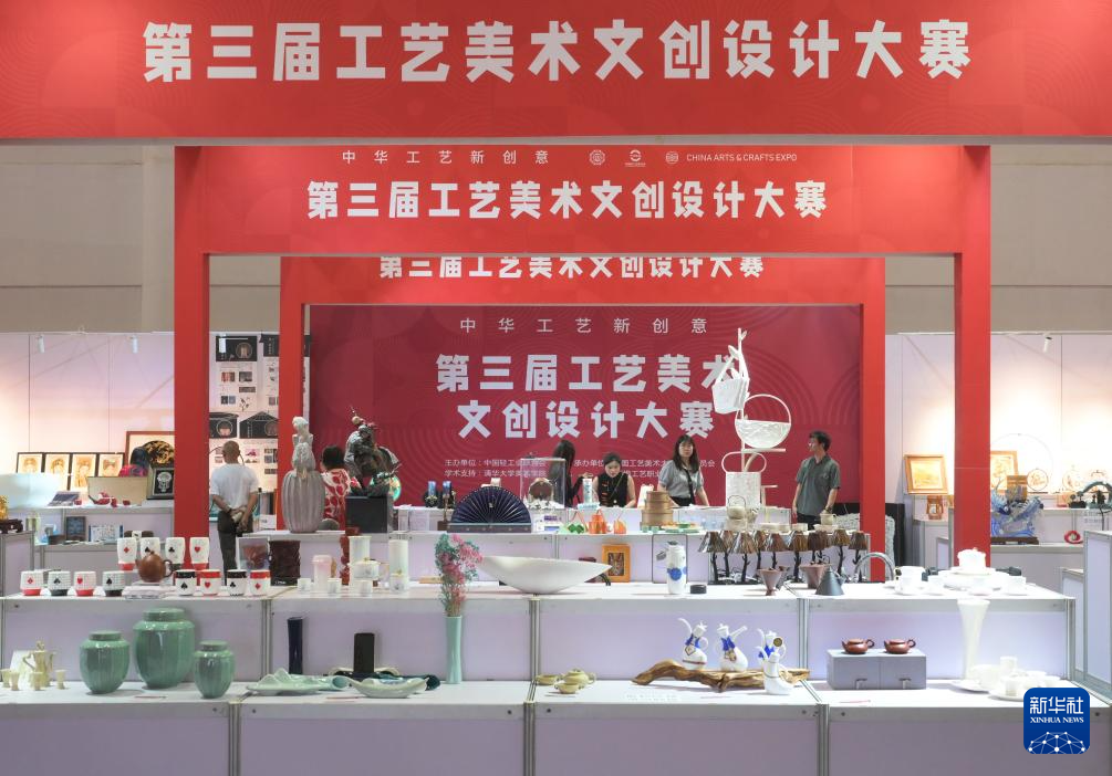5月10日在博覽會上拍攝的第三屆工藝美術文創設計大賽參賽作品。