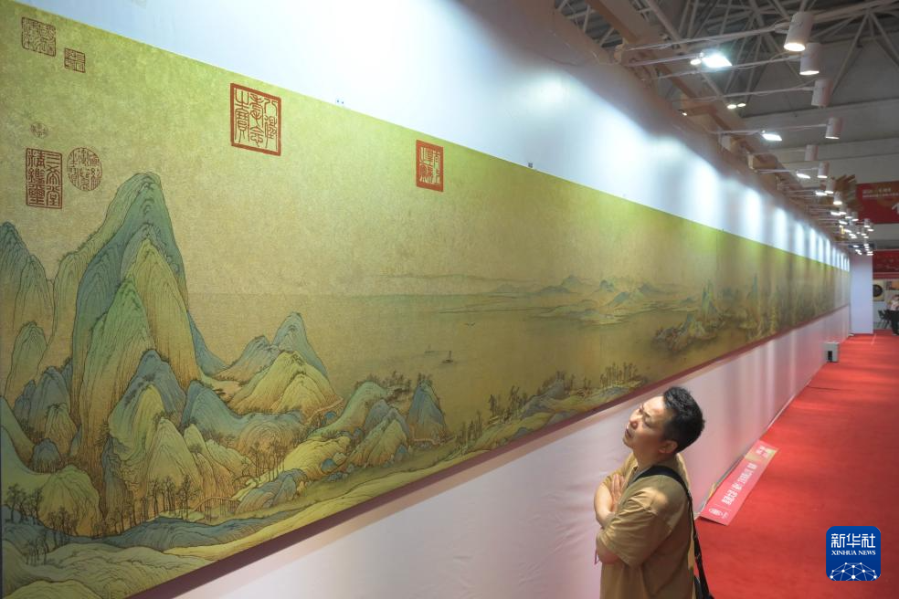 5月10日,參觀者在博覽會上欣賞漆畫作品。