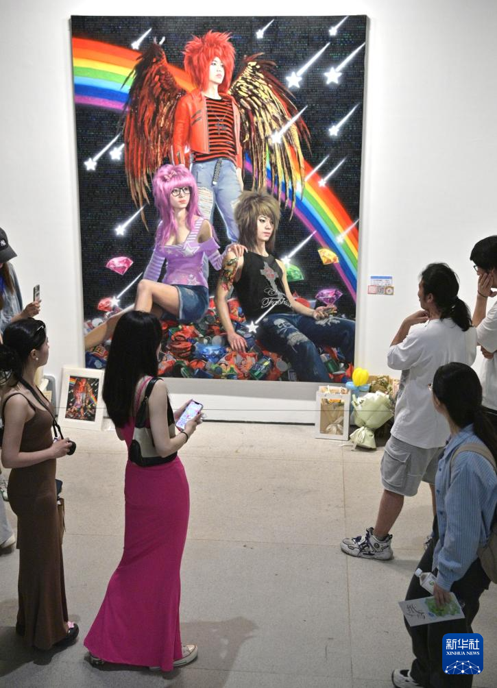 5月13日,參觀者在中央美術學院美術館參觀壁畫系畢業生作品。