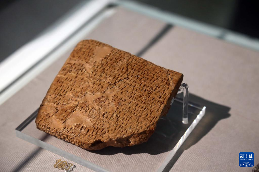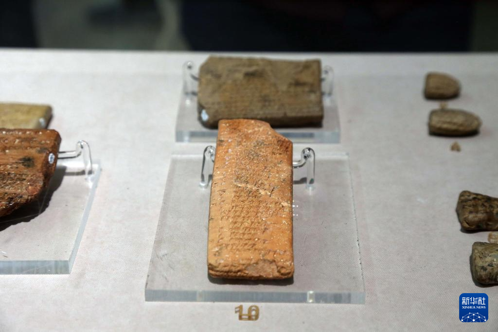 這是5月18日在伊朗德黑蘭的伊朗國家博物館拍攝的古泥板。