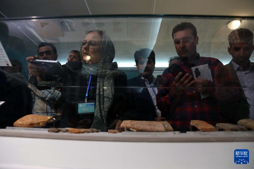5月18日,在伊朗德黑蘭,人們在伊朗國家博物館觀看展出的古泥板。