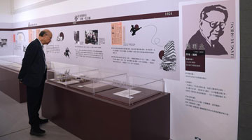 5月20日,《越劇》特種郵票設計師丁筱芳(左)、丁陽父子介紹創作過程。