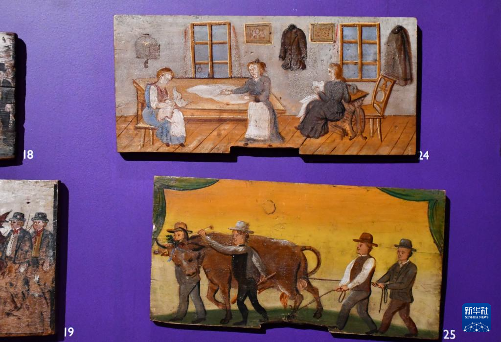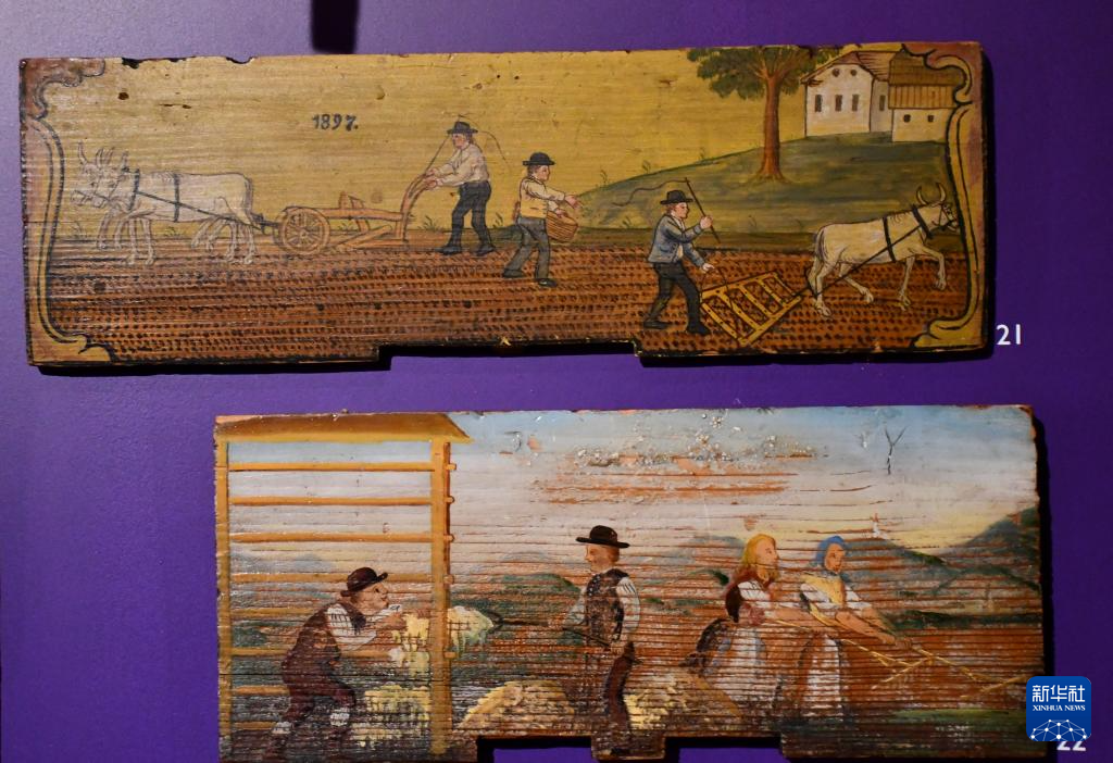 這是5月19日在斯洛文尼亞盧布爾雅那的斯洛文尼亞民族志博物館拍攝的彩繪蜂箱面板。