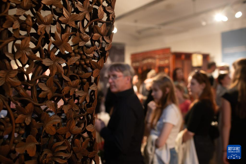 5月29日,在位于盧布爾雅那的斯洛文尼亞民族志博物館,由故宮博物院專家修復的古建筑內檐裝修木質花罩在“斯庫謝克亞洲珍品文物展”上展出。