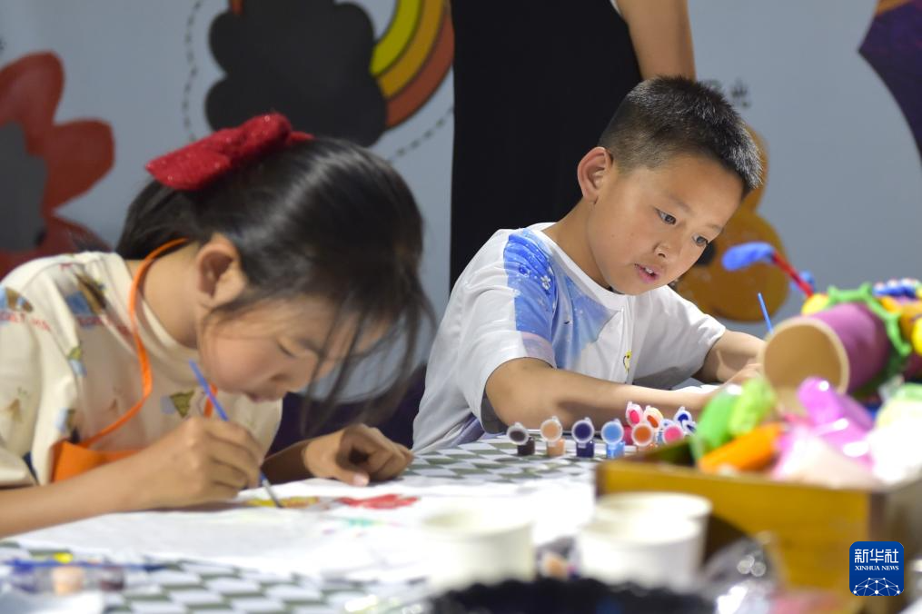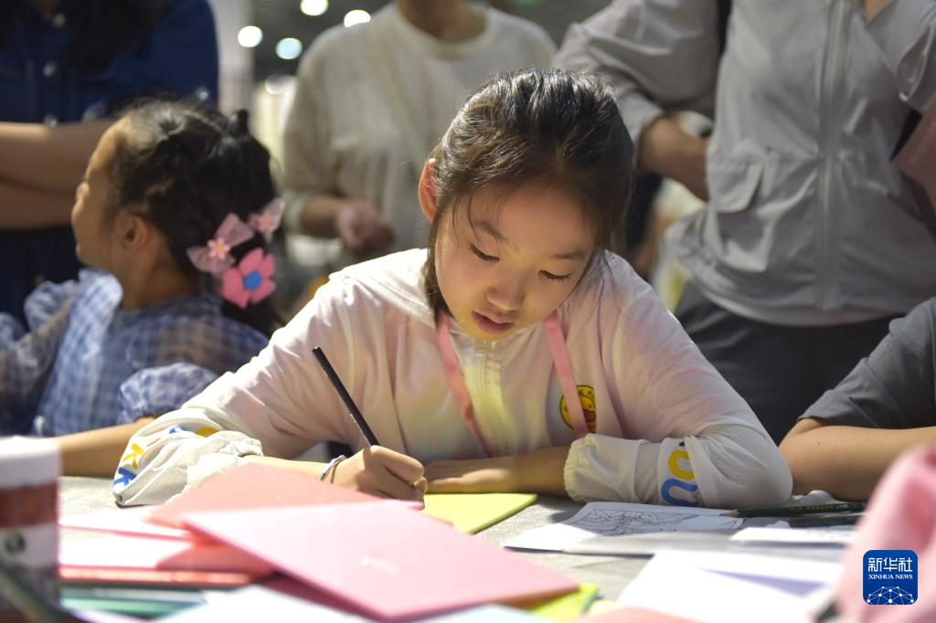當日,位于寧夏銀川的寧夏圖書館舉辦兒童書畫展,慶?!傲弧眹H兒童節。展覽現場舉辦“繪未來”主題地繪、DIY卡通面具、水彩繪畫等豐富多彩的活動,吸引孩子們積極參與。