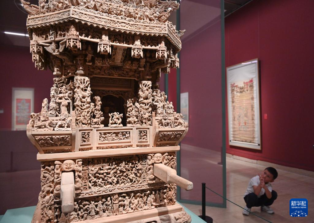 6月2日,小朋友在“何以永春”千年海絲非遺藝術展上了解閩南傳統攆轎。