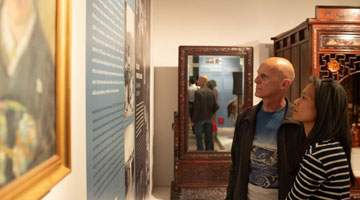 6月12日,人們在“古波斯的榮耀——伊朗文物精華展”現場觀看銀幣。