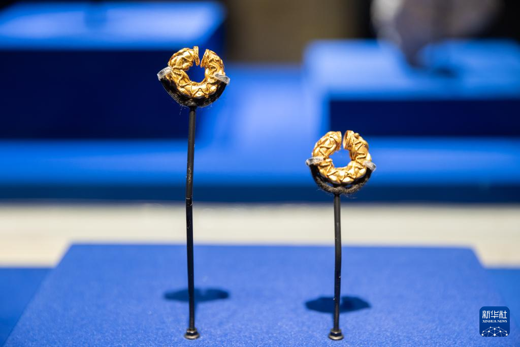 6月12日,在“古波斯的榮耀——伊朗文物精華展”上拍攝的金耳環。