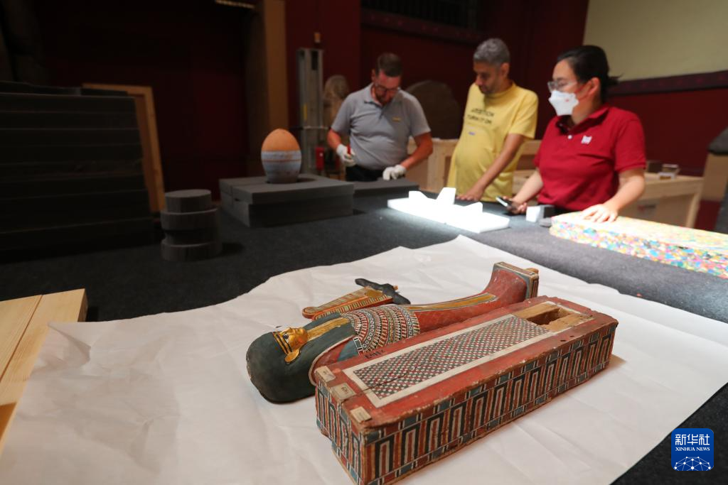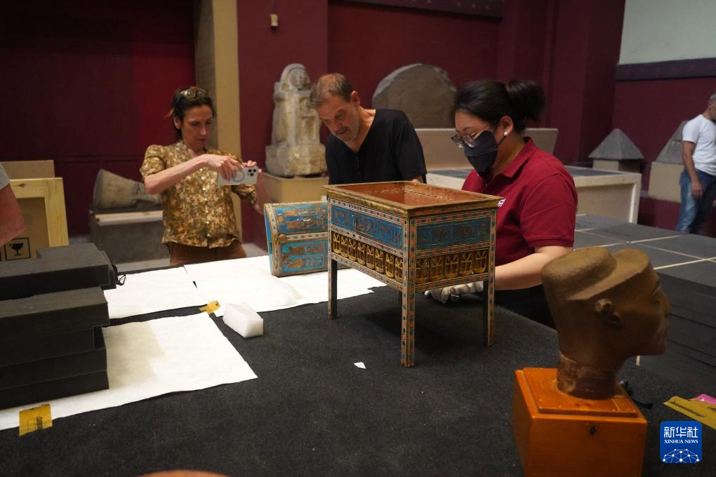 5月23日,在位于埃及首都開羅的埃及國家博物館,工作人員對打包文物進行檢查。