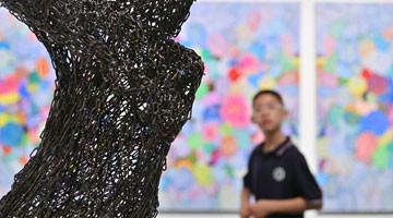 6月17日在上海博物館人民廣場館拍攝的來自埃及國家博物館的埃赫那吞半身像。