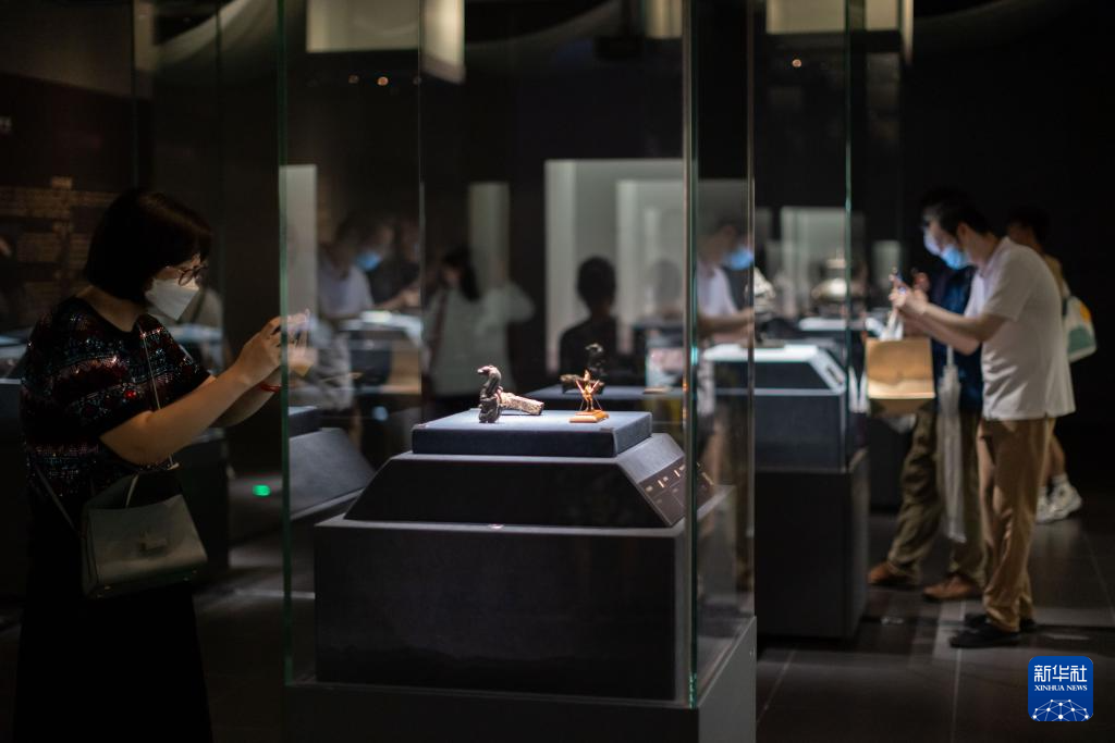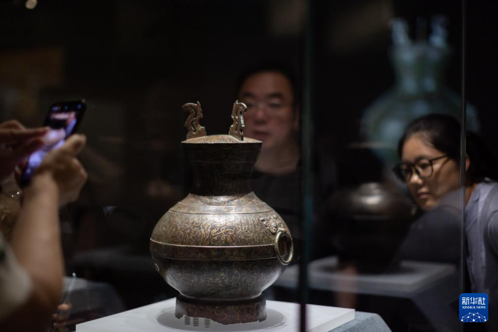 6月25日,觀眾在觀看錯金銀鳥篆文銅壺。