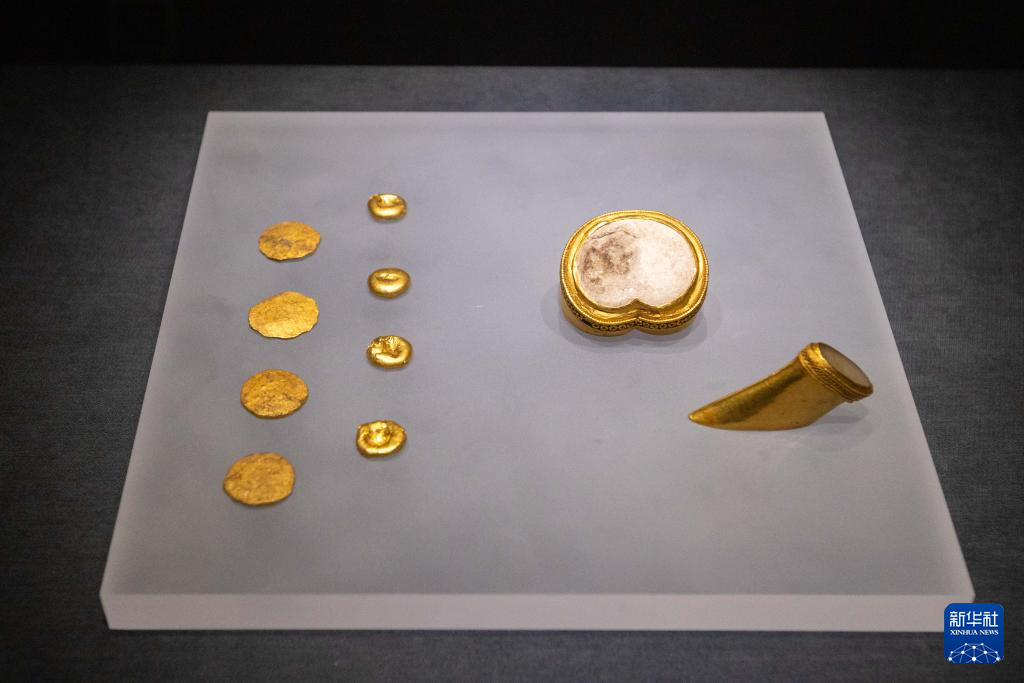 6月25日在“大漢未央——漢代王室精品文物展”上拍攝的漢代黃金制品。