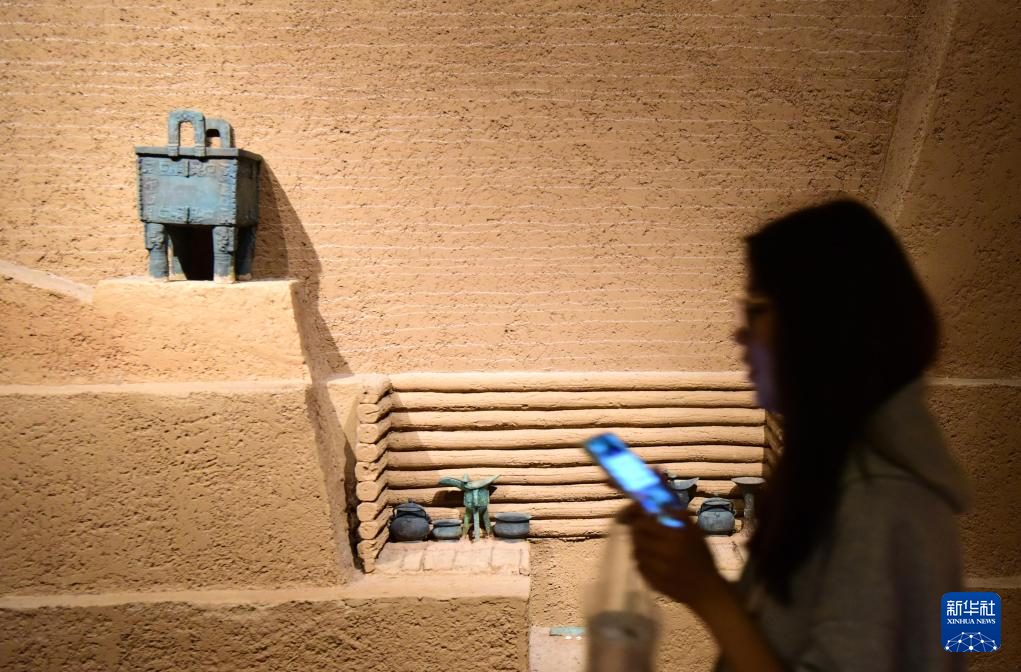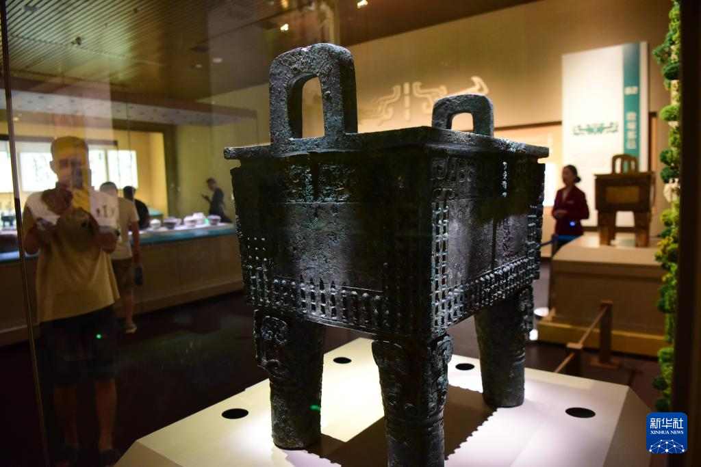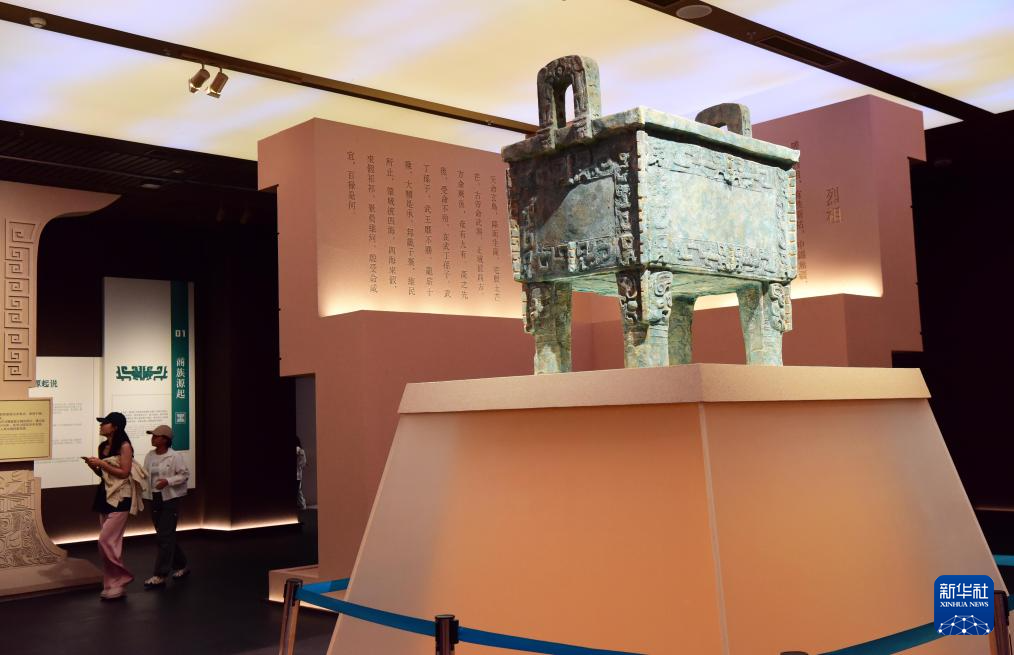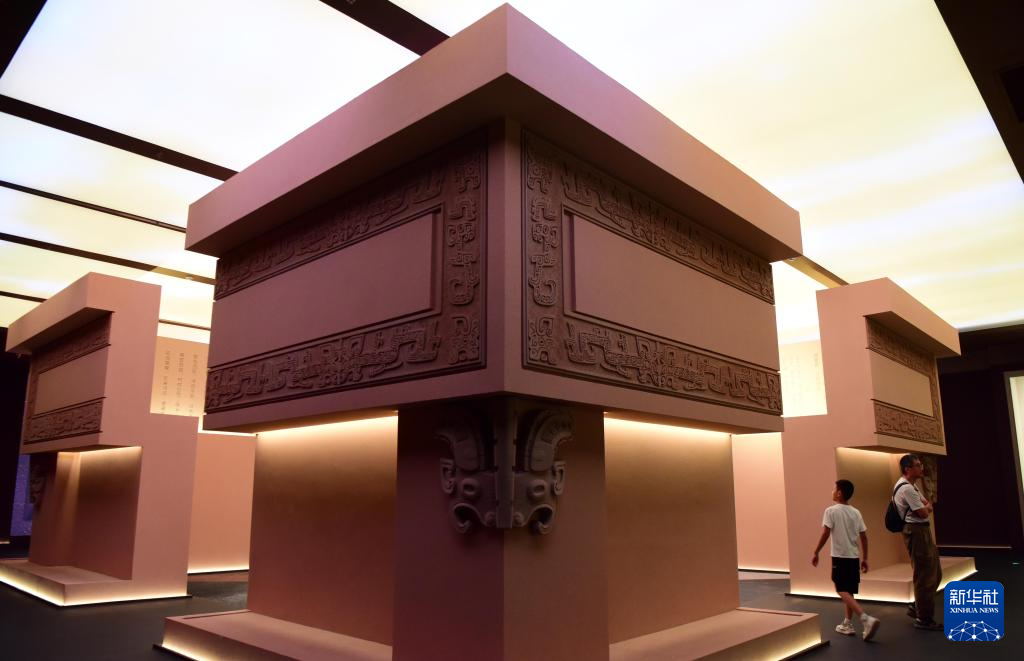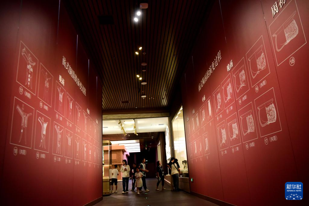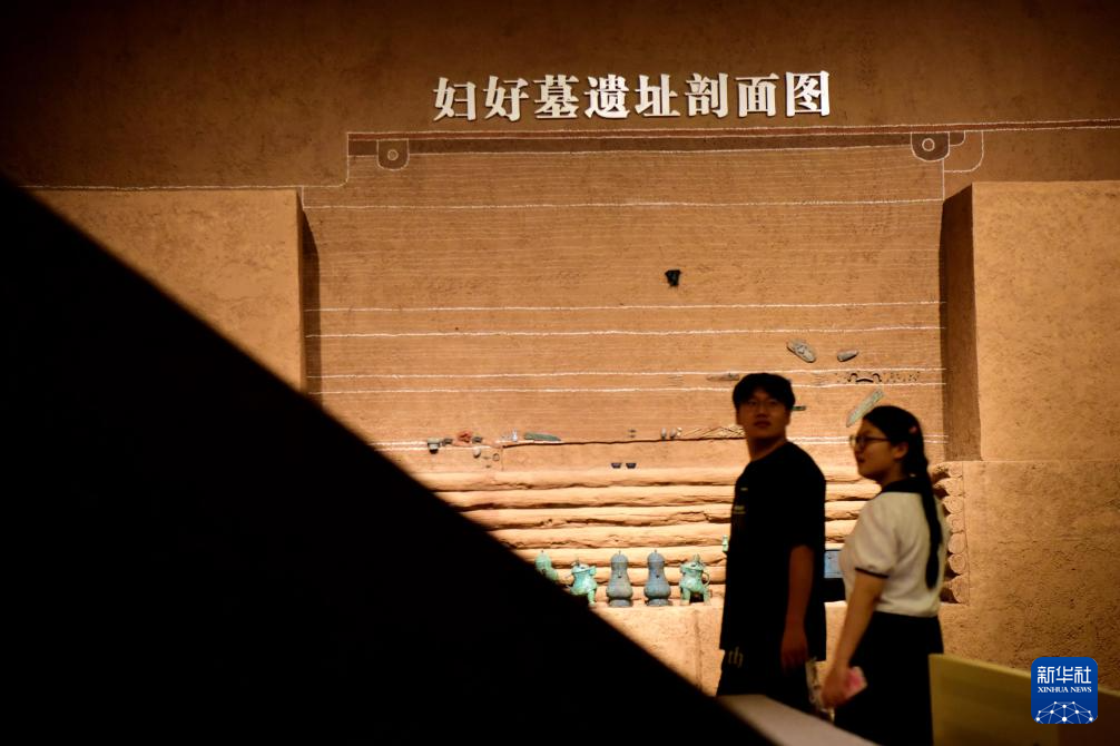 7月1日,游客在河南安陽殷墟博物館新館內參觀。