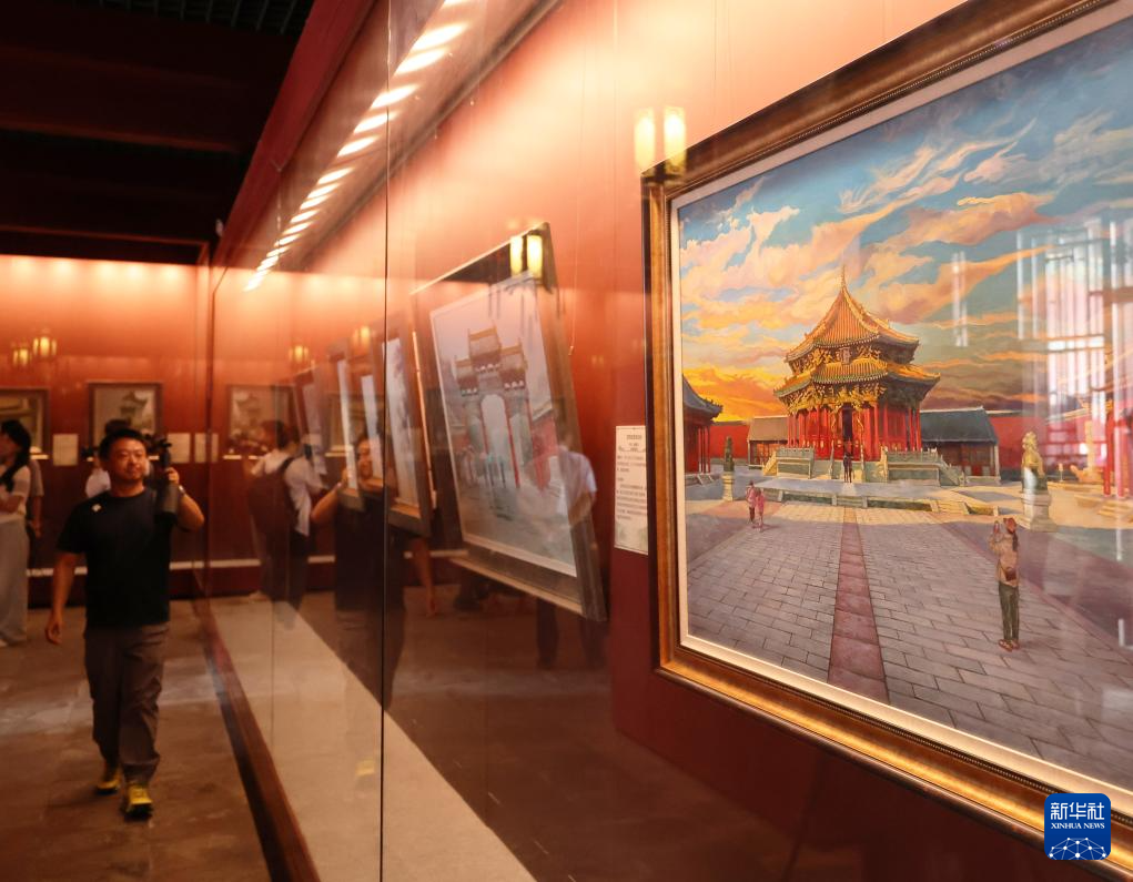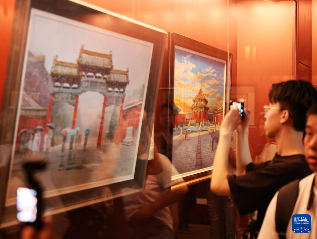 7月2日,參觀者在沈陽故宮觀看繪畫作品展。
