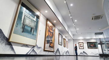 在河南省禹州市神垕鎮,一家鈞瓷企業的工作人員在展廳內整理展品(7月3日攝)。