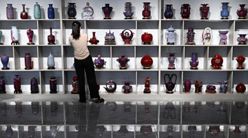 這是在位于河南省禹州市的鈞官窯址博物館內拍攝的鈞窯展品(7月3日攝)。