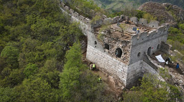 在河南省禹州市的騶虞窯內,負責人任曉飛在開窯后查看燒成效果(7月2日攝)。