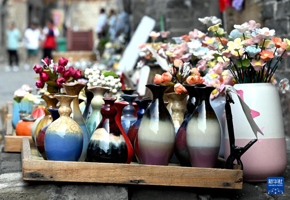 這是在河南省禹州市神垕鎮一家鈞瓷店鋪外擺放的貨品(7月3日攝)。