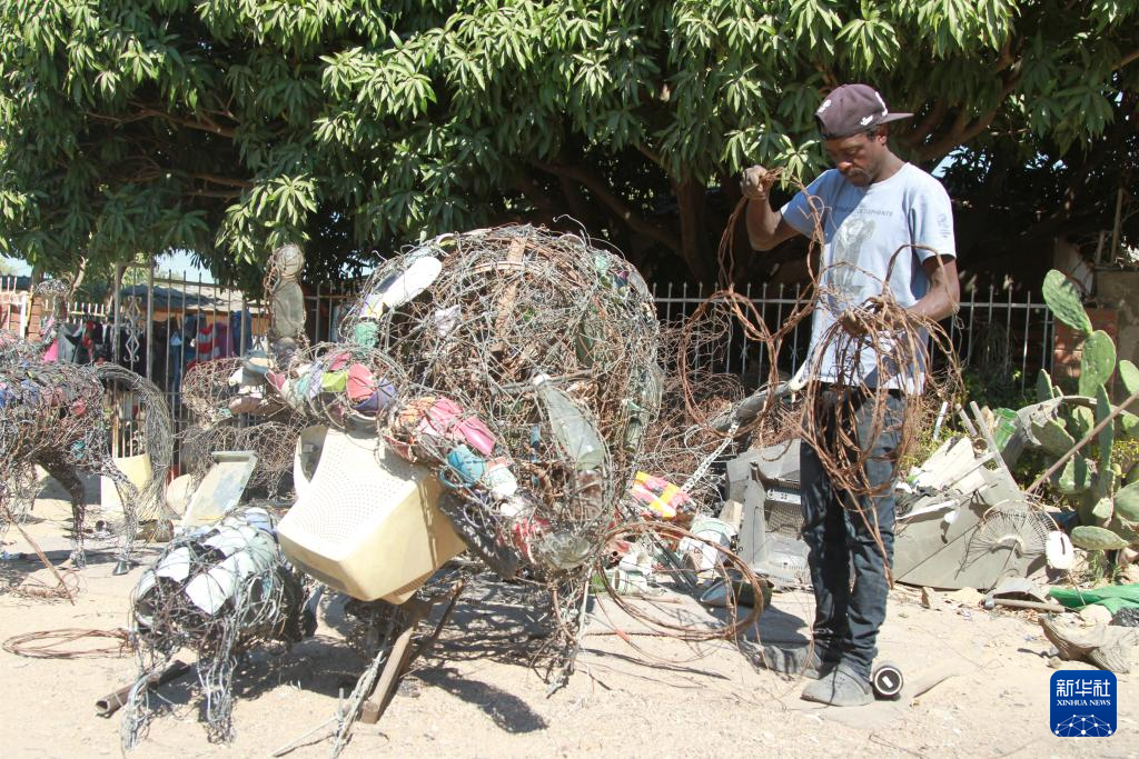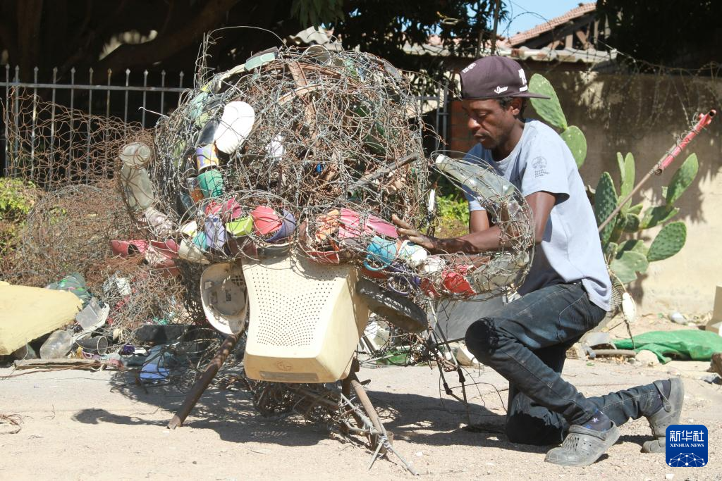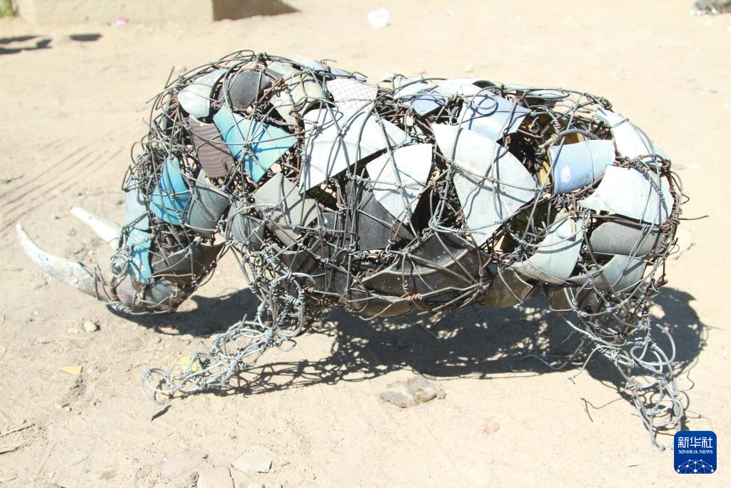 這是7月3日在位于津巴布韋哈拉雷省的一座小鎮拍攝的約翰遜·祖澤制作的藝術品。