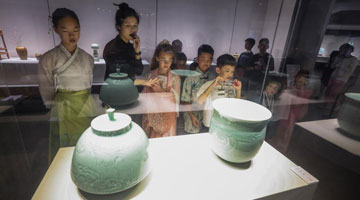 7月7日,在新疆克州阿圖什市新時代文明實踐中心,學生參觀作品展覽。