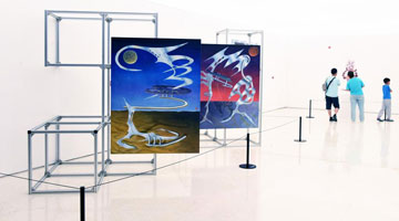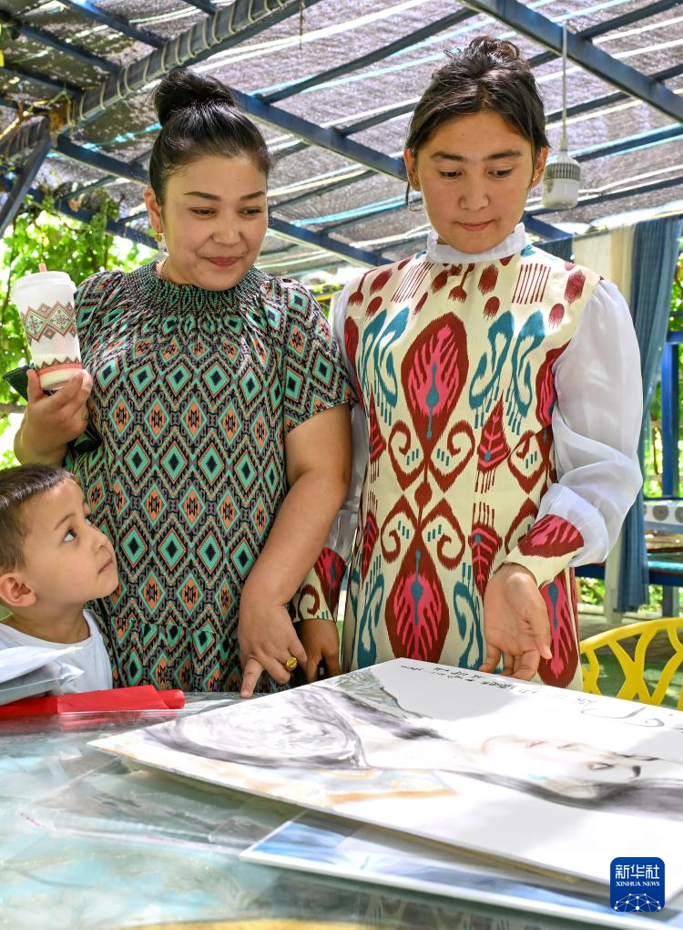 7月6日,在新疆克州阿圖什市松他克鎮阿孜汗村,村民在欣賞作品。