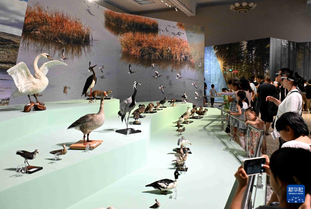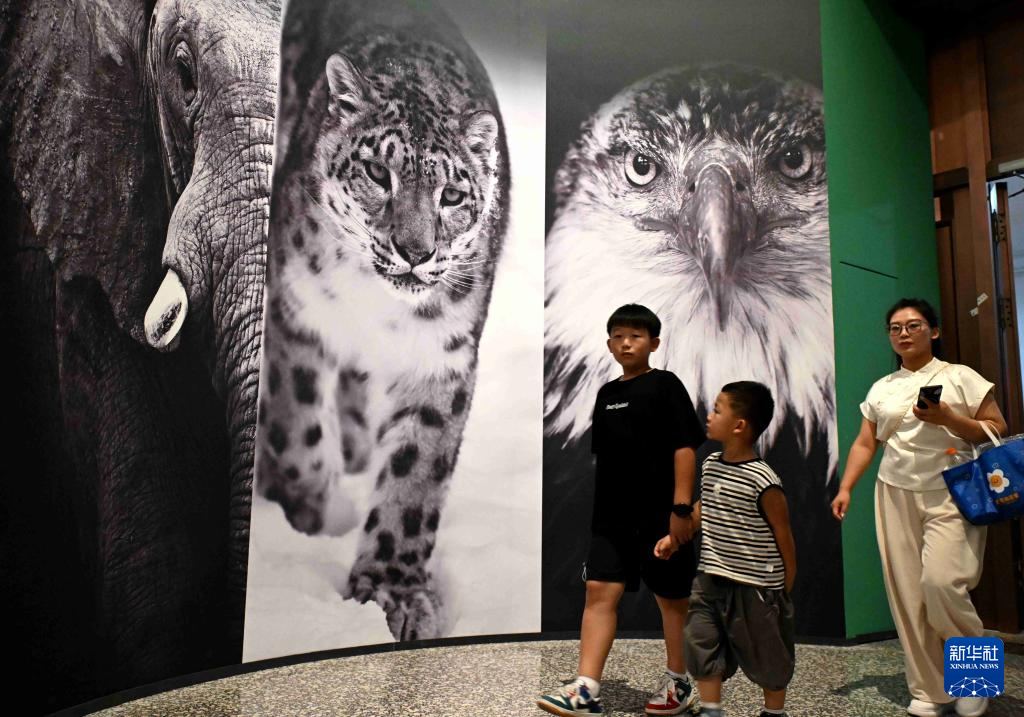 7月7日,觀眾在河北博物院參觀“珍奇生靈——瀕危動物展”。
