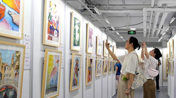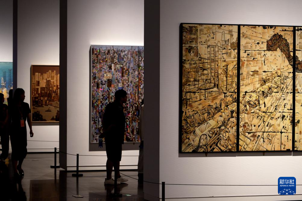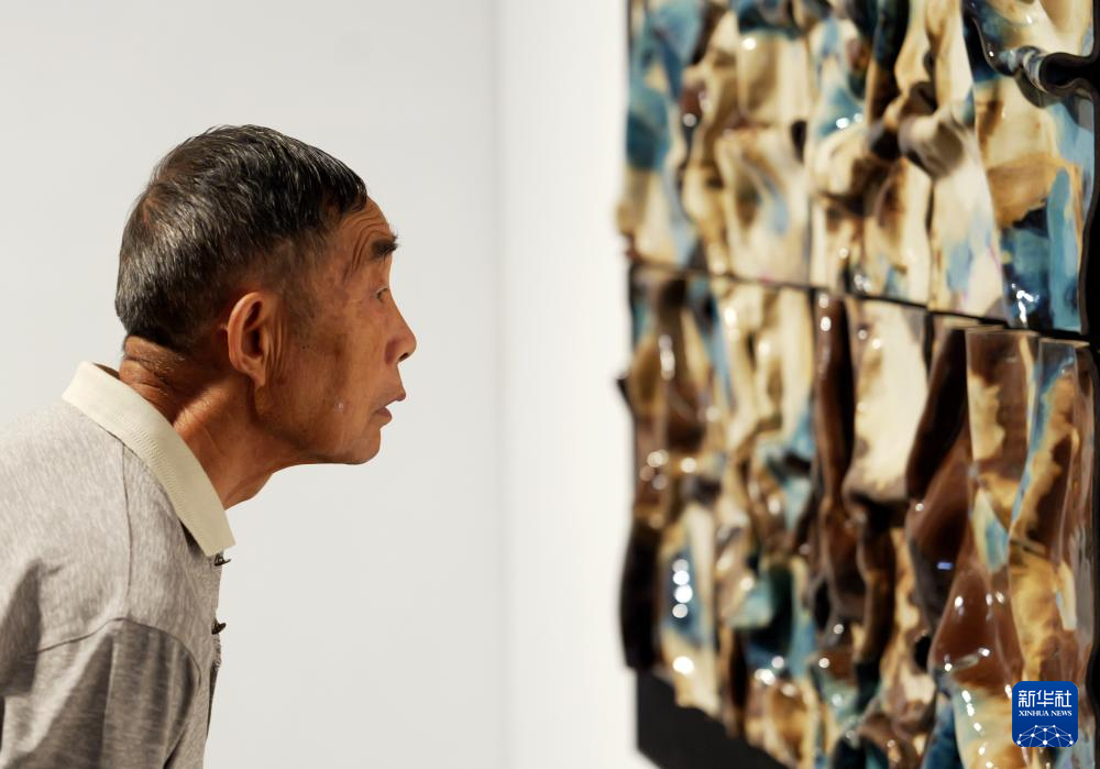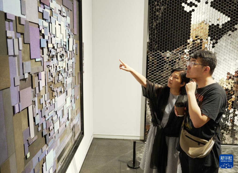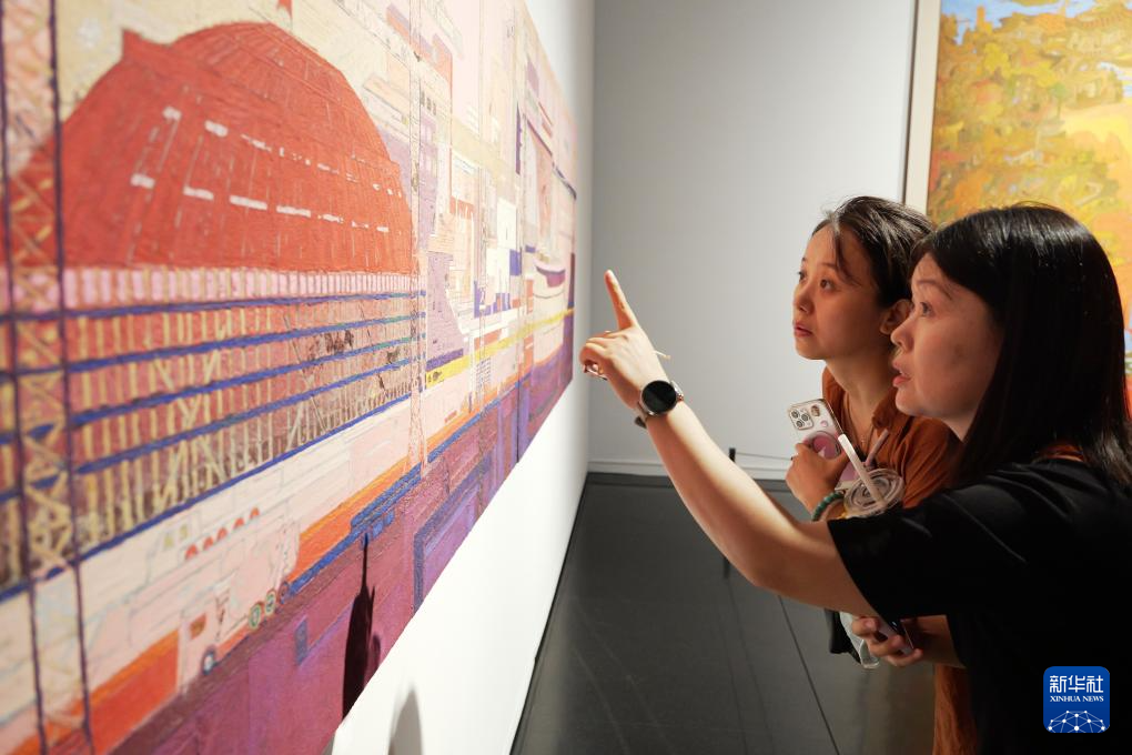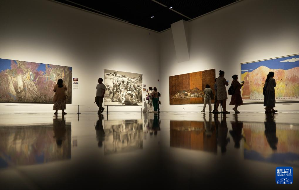 7月12日,觀眾在第十四屆全國美術作品展覽壁畫作品展上參觀。