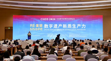 7月24日,在長沙博物館,觀眾在觀看展品“漁陽”題湊木。