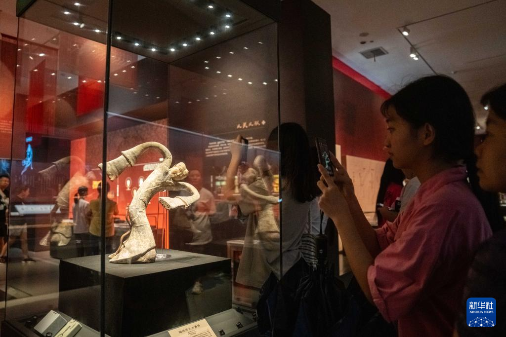 7月24日,在長沙博物館,觀眾在拍攝展品陶繞襟衣女舞俑。