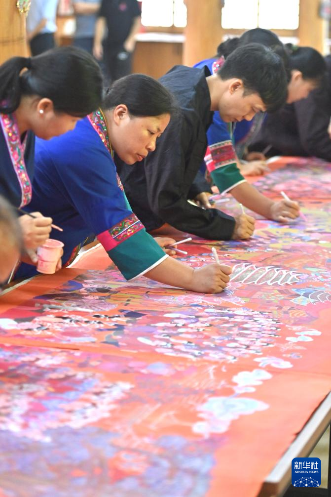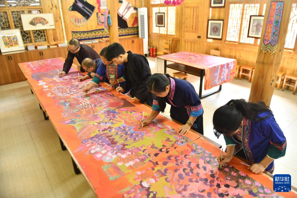近年來,廣西柳州市三江侗族自治縣通過專業人才培養、傳統藝術進校園、打造研學基地、開展文藝結對幫扶、舉辦畫展和藝術節等方式,大力推動農民畫產業發展,助力鄉村振興。