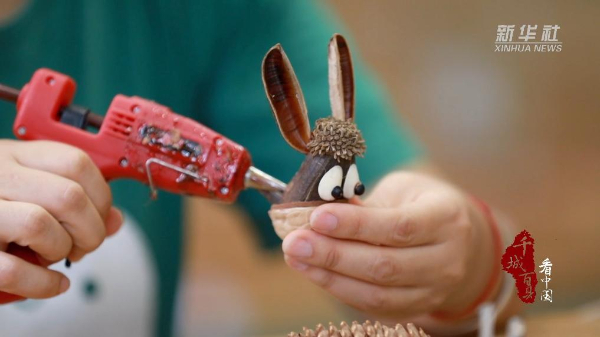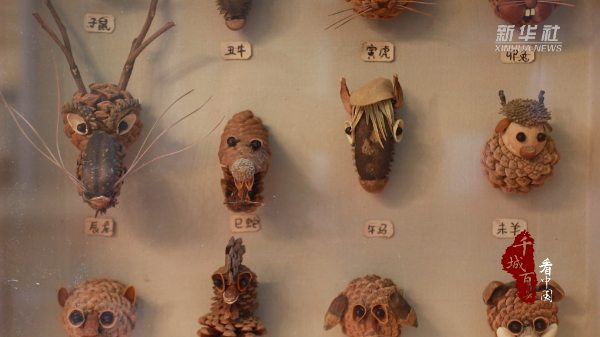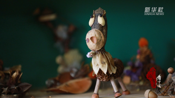 在河北省保定市蓮池區,手工藝人尚芳發揮創意,采用獨特技法,將松果、堅果殼等不同自然材料粘貼組裝,制作成龍、貓頭鷹、大象等動物造型的手工藝品,盡物之美、得物之趣,深受當地群眾喜愛。