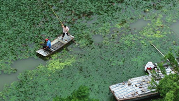 8月27日,國家文物局考古中心的工作人員馮清慧將文物放入脫鹽池。