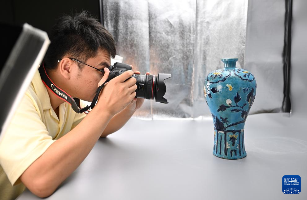 8月27日,中國(海南)南海博物館的工作人員胡寶為文物拍照。