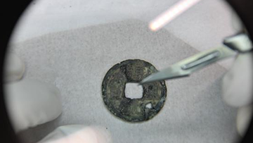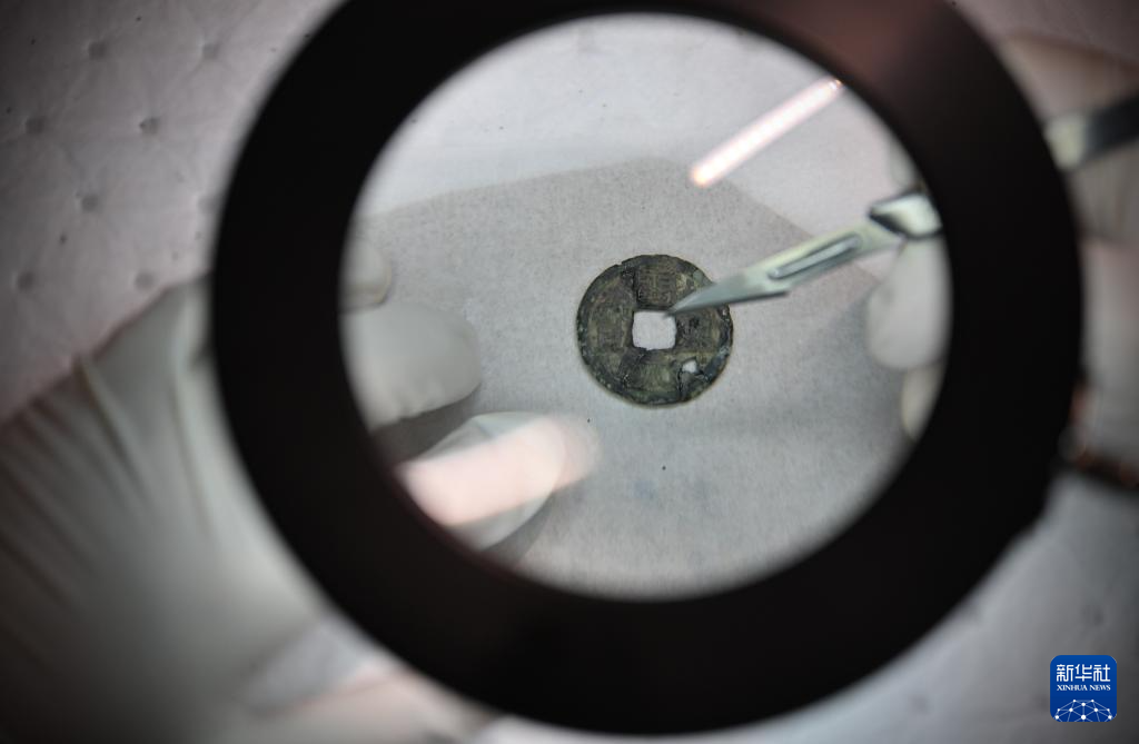 這是8月27日拍攝的正在進行脫鹽處理的文物。
