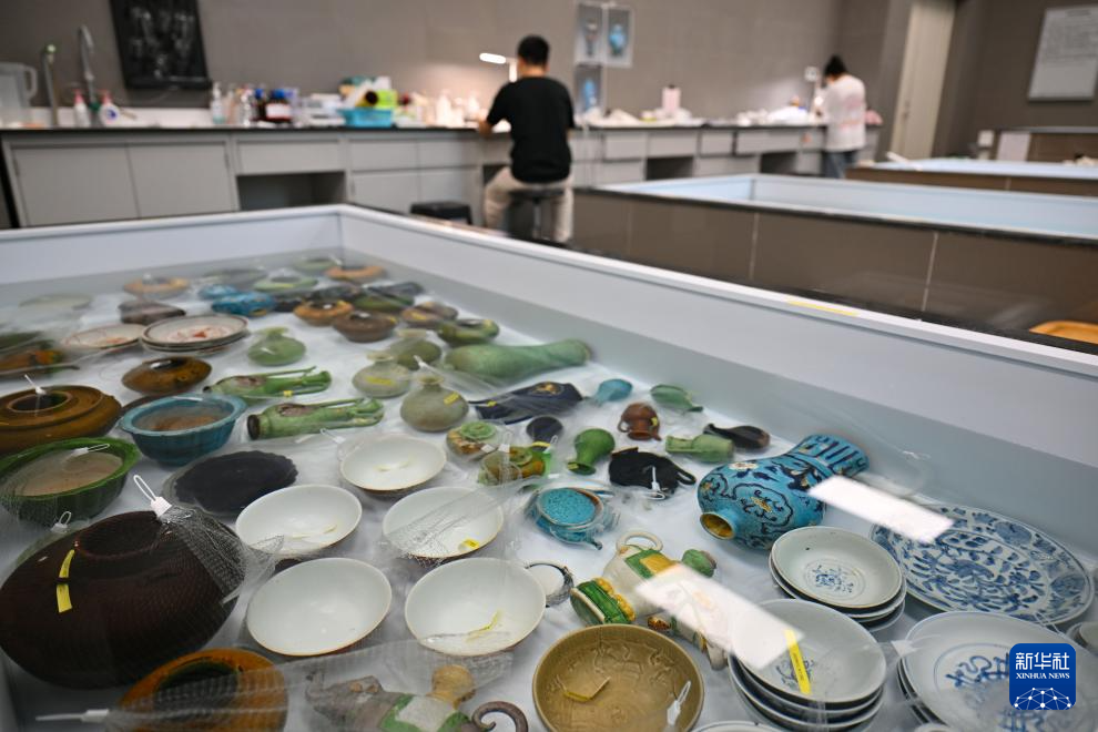 8月27日在中國(海南)南海博物館拍攝的修復中的文物。