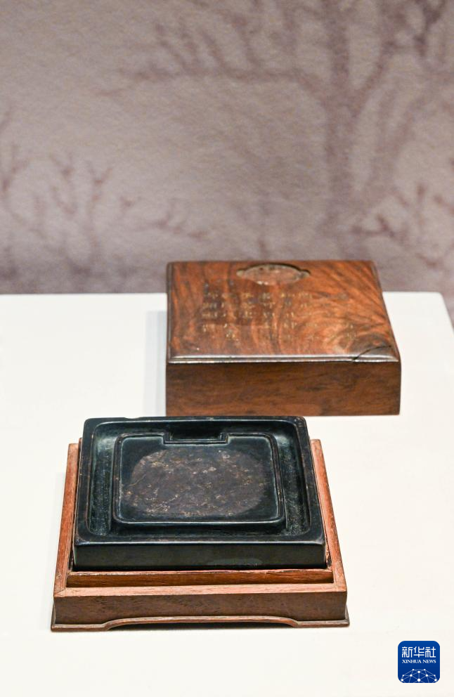 8月31日在海南省博物館拍攝的“物華天寶 黎海瓊珍——故宮博物院藏海南文物特展”展出的清代端石石渠方硯。