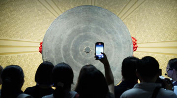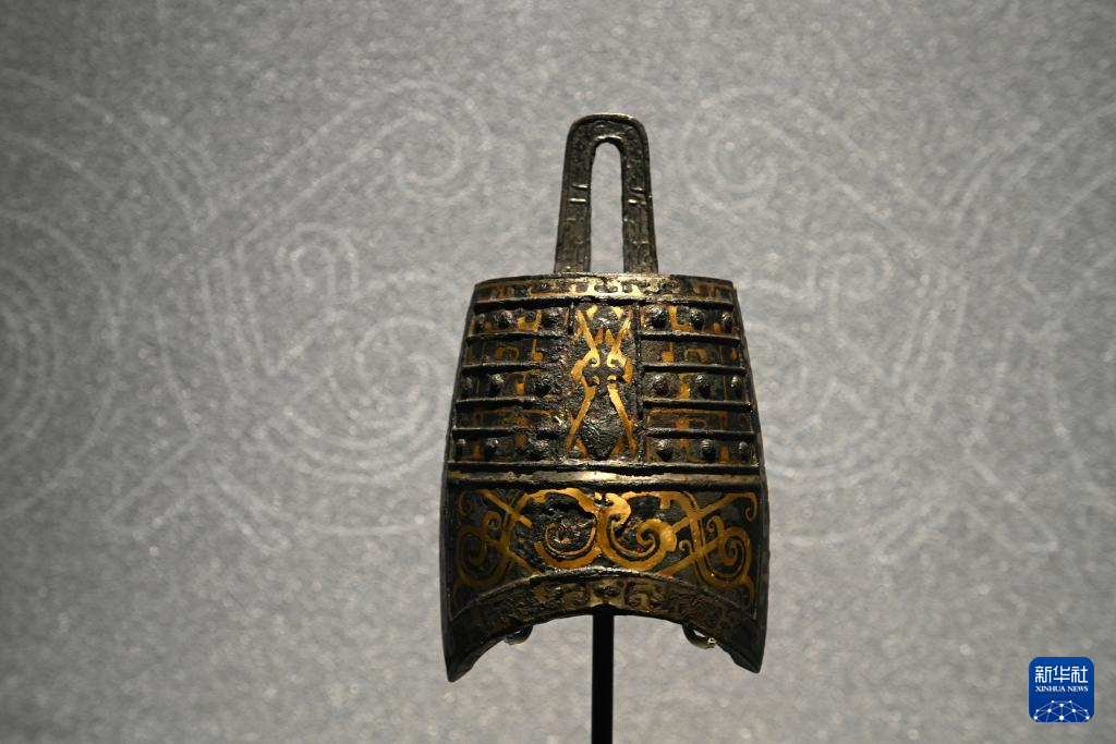 這是在秦始皇帝陵博物院展出的錯金銀樂府鐘(9月8日攝)。