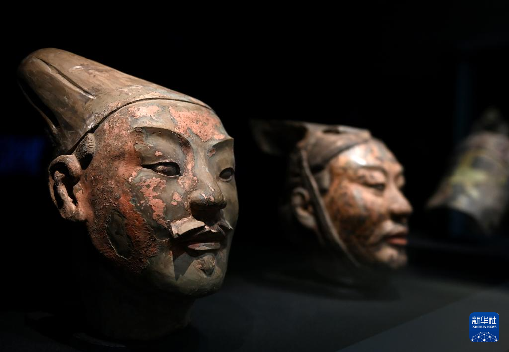 這是在秦始皇帝陵博物院展出的彩繪俑頭(9月8日攝)。