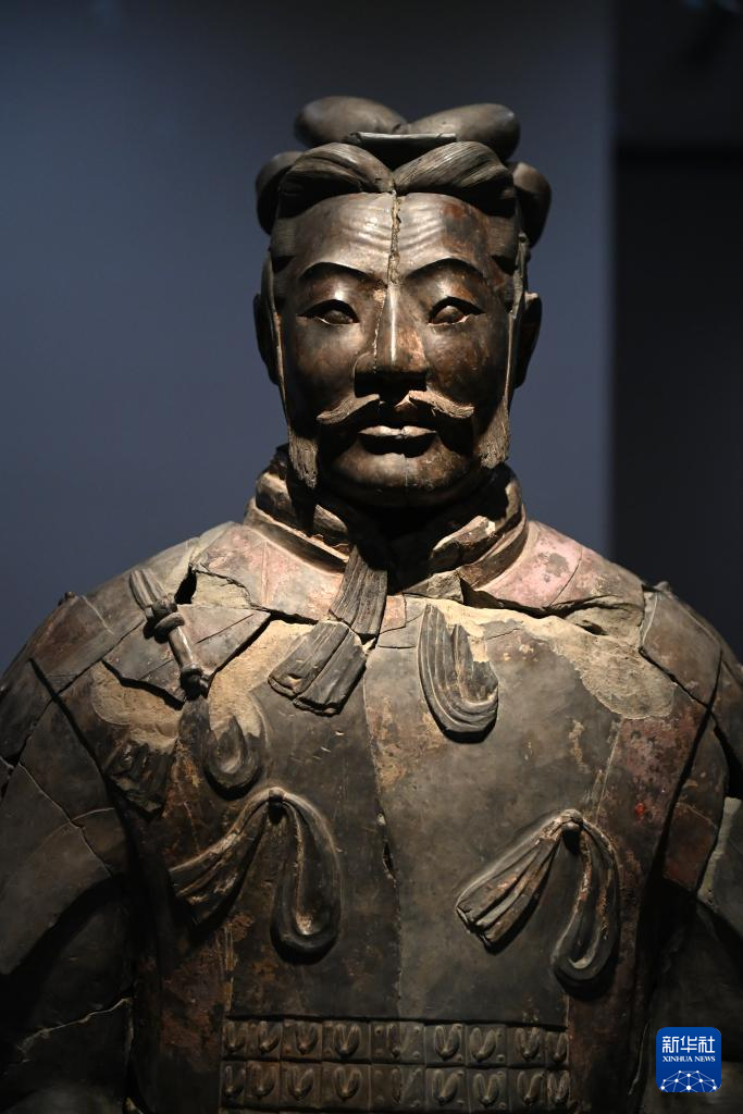 這是在秦始皇帝陵博物院展出的高級鎧甲軍吏俑(9月8日攝)。