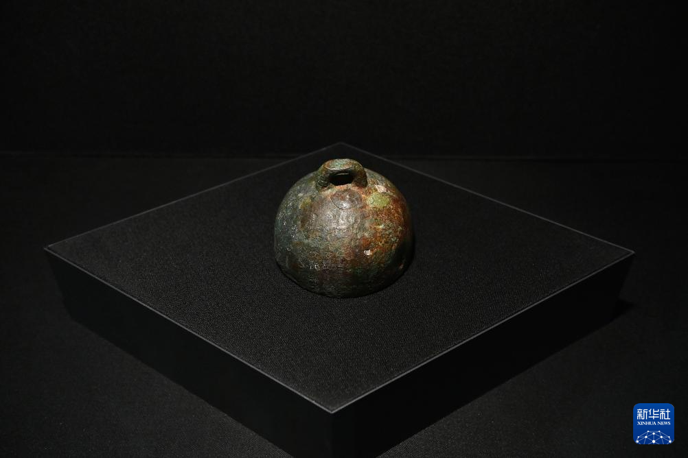 這是在秦始皇帝陵博物院展出的秦兩詔文空心銅權(9月8日攝)。