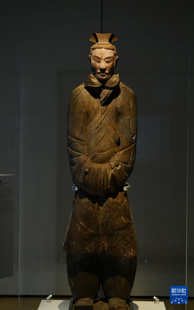 這是在秦始皇帝陵博物院展出的袖手俑(9月8日攝)。