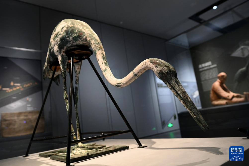 這是在秦始皇帝陵博物院展出的青銅鶴(9月8日攝)。