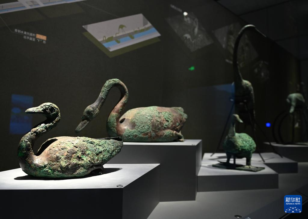 這是在秦始皇帝陵博物院展出的青銅水禽(9月8日攝)。