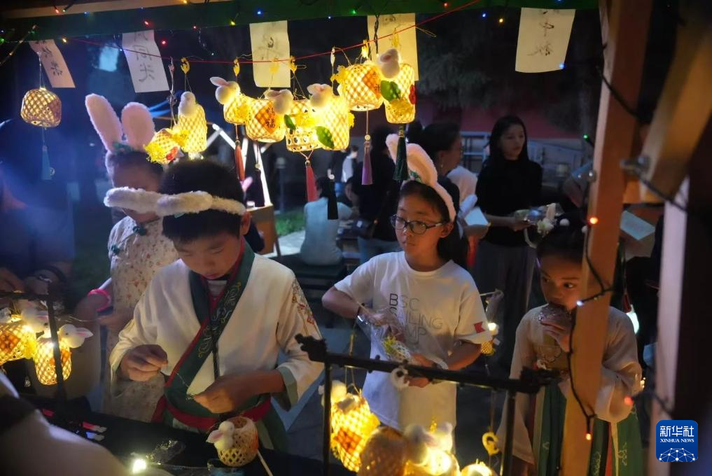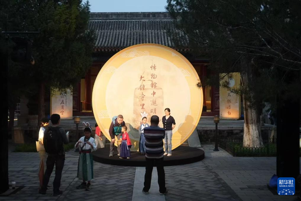 當日,北京大鐘寺古鐘博物館舉辦中秋主題活動,邀請游客做月餅,染漆扇,賞古鐘。