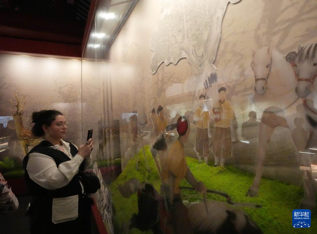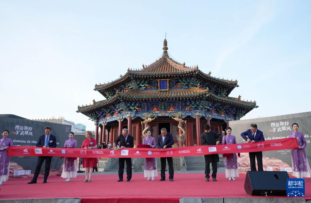 當日,沈陽故宮博物院和法蘭西學院聯合主辦的“搜苗狝狩 獷武雄風——清《盛京圍場全圖》與滿族人的漁獵生活”展覽在沈陽故宮博物院開展。